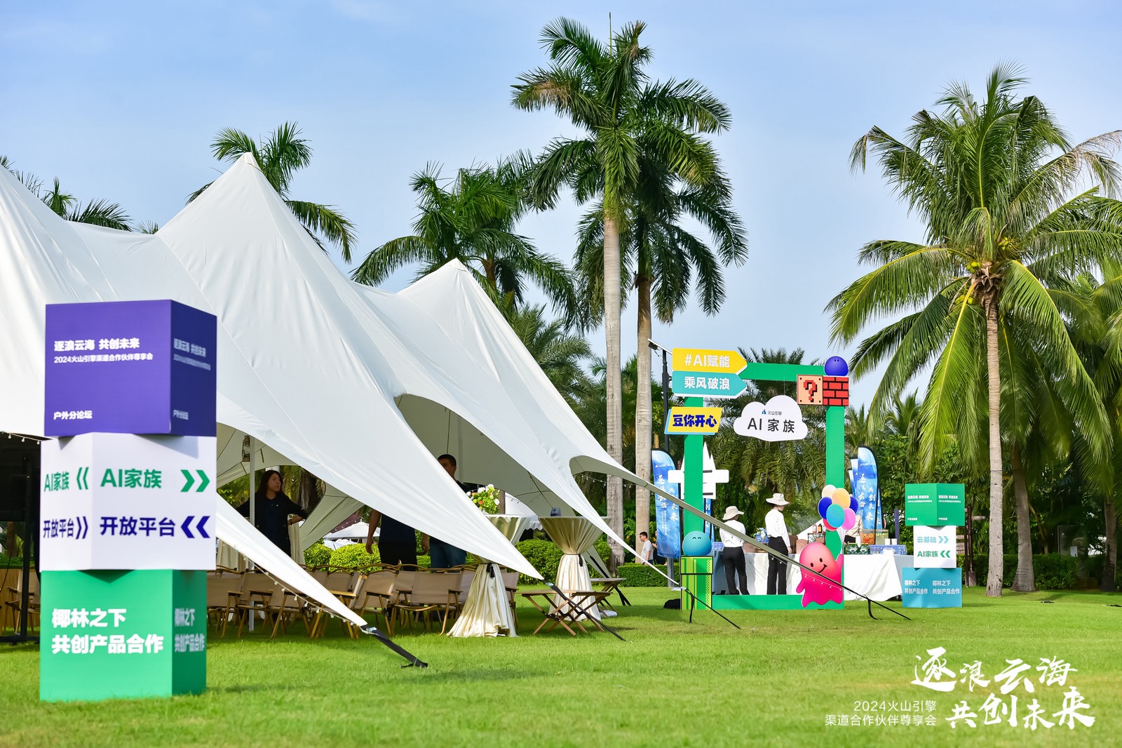 火山引擎作為互聯網領軍企業字節跳動旗下云服務平臺,秉承卓越技術實力及豐富行業經驗,致力于賦能企業實現體驗創新、數據驅動的業務增長,助力企業構建敏捷數字化能力,推動其在不斷變化的市場環境中持續迭代、穩健發展。本次業會議中,火山引擎重磅亮相核心產品——火山云、豆包大模型、方舟模型托管平臺及Hiagent智能體應用開發平臺,詳盡闡釋產品競爭優勢及生態合作政策。于風光旖旎的海濱之地,與眾多合作伙伴共商渠道策略,探討市場拓展之道;椰影搖曳綠蔭之下,深入交流碰撞,描繪未來合作藍圖,以期在數字化轉型大潮中攜手共進,共創輝煌。作為本次活動全案承辦方,中旅會展全面統籌現場管理、嘉賓接待、技術支持等多個板塊服務工作,并聯動海南分公司,結合三亞獨特地域風情,創新性打造戶外營地特色展區,為與會嘉賓提供定制化交流空間。此外,項目組巧妙融入無人機攝影技術,為參與者捕捉創意無限的合影瞬間,將新時代科技動力與新質生產力相結合,引領高端交流體驗革新,實現卓越品質與技術創新的完美交響。