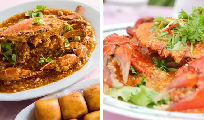 招牌菜辣椒螃蟹,淋上用辣椒醬和蟹黃熬成的醬汁,配上黃金小饅頭,回味無窮