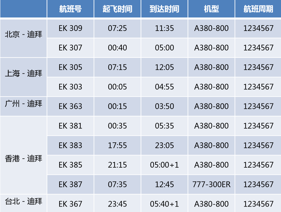 迪拜航空公司飛往中東及亞非的90多個目的地;