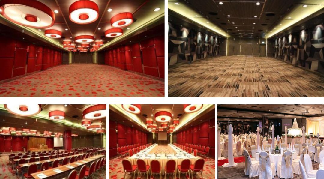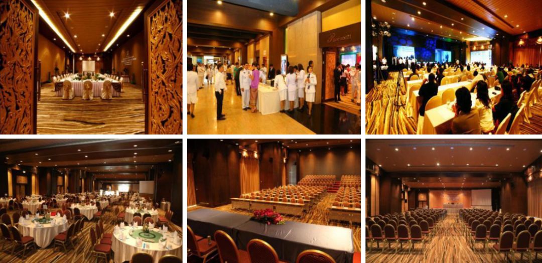 6 個泰式裝潢的多功能廳/會議室,結合起來的面積可以達到1,100平方米,課桌式擺設可容納300 -1,000個座位,圓桌式擺設可容納300 -900個座位